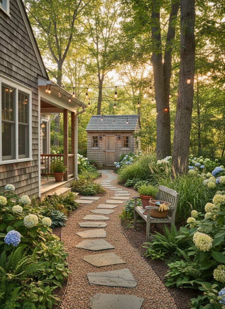 How you reach the shed matters just as much as how it looks inside. A simple stone path, gravel walkway, or stepping stones can make the journey feel like part of the home experience. This small detail reinforces the idea that the shed belongs to the space, not sits apart from it.