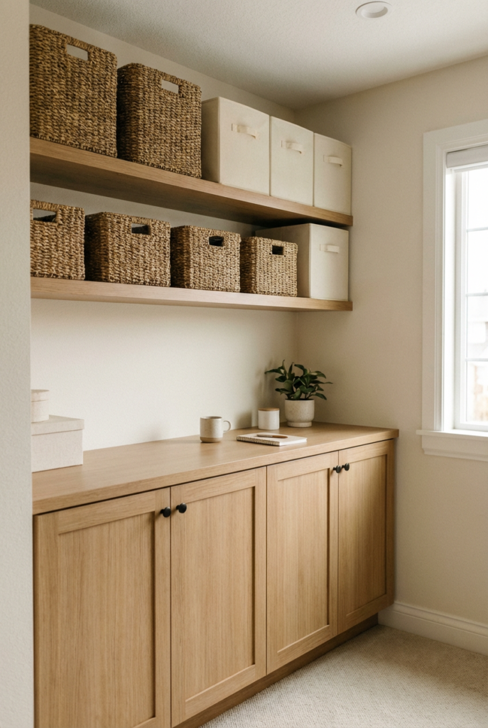 A tidy surface allows your mind to settle. Storage that blends into your decor maintains the cozy mood.