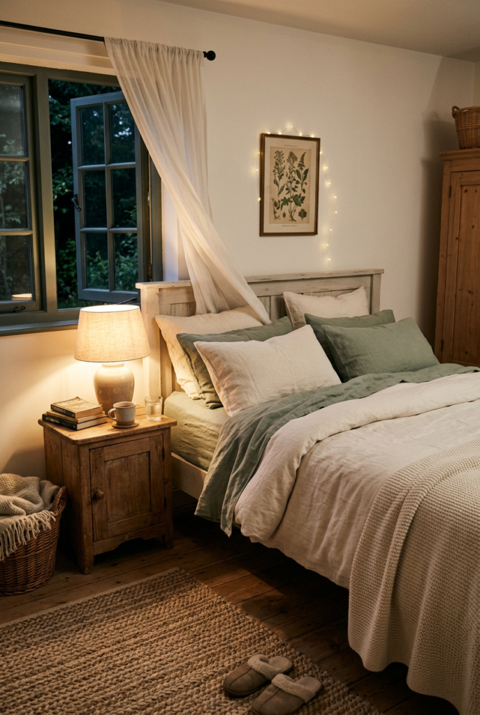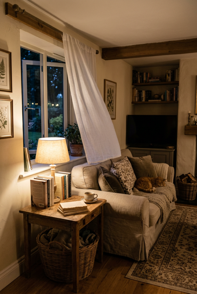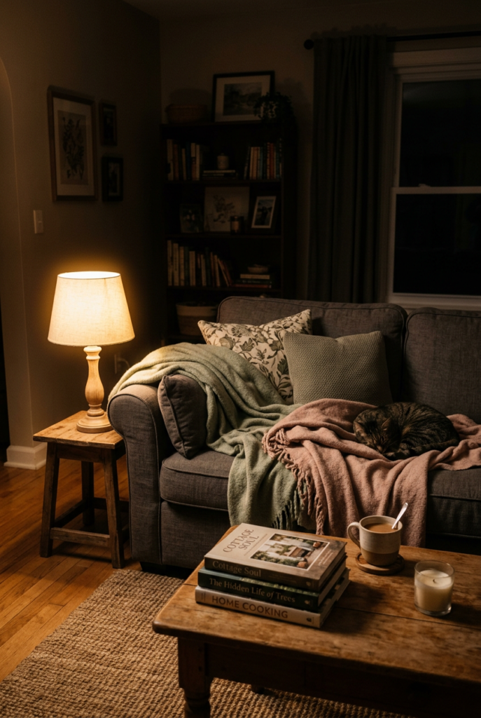 By dimming lights, clearing small surfaces, and slowing your movements, you signal to your body that the day is closing. The house begins to feel quieter. Your mind follows.