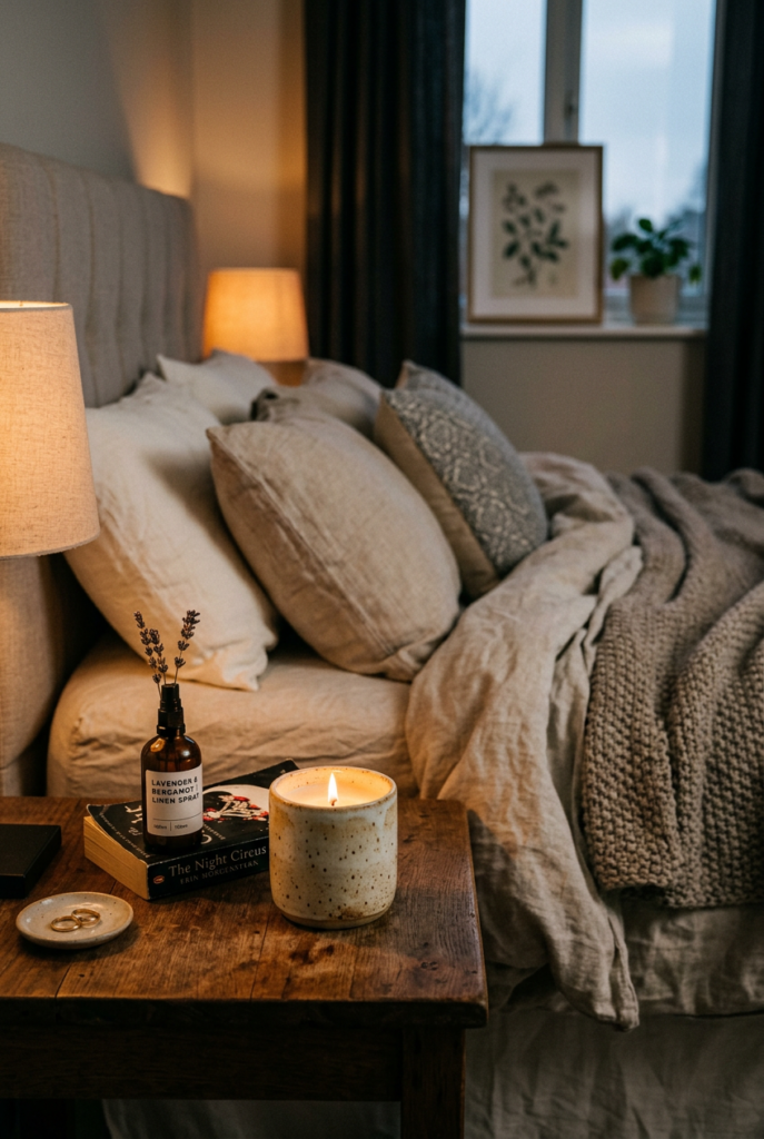 Light a subtle candle in the evening or use a linen spray on your pillows.