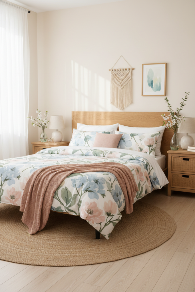 Heavy winter layers start to feel too dark, and you may crave something lighter and more romantic. Floral bedding is one of the easiest ways to shift the mood without changing your furniture or wall color.