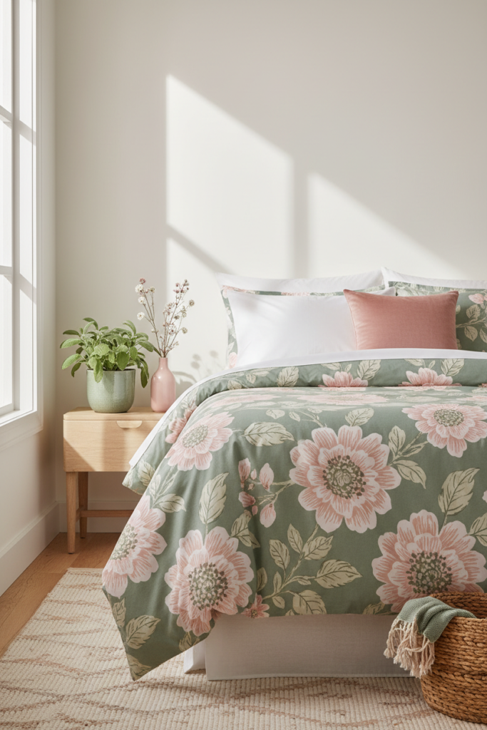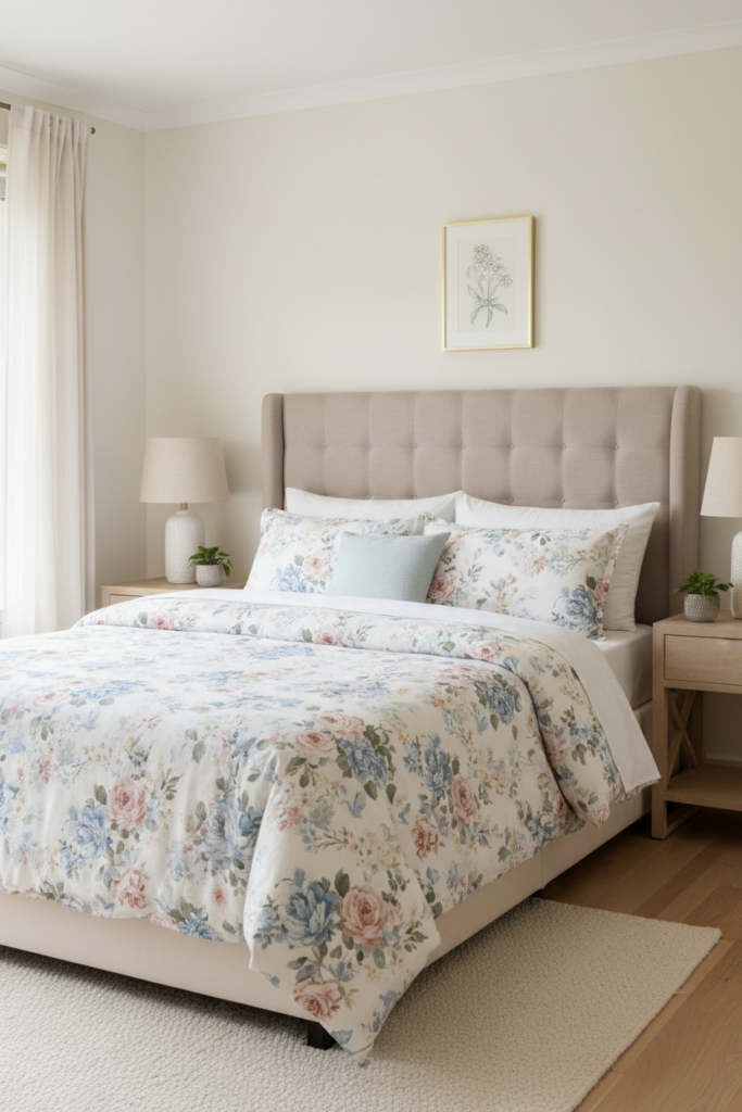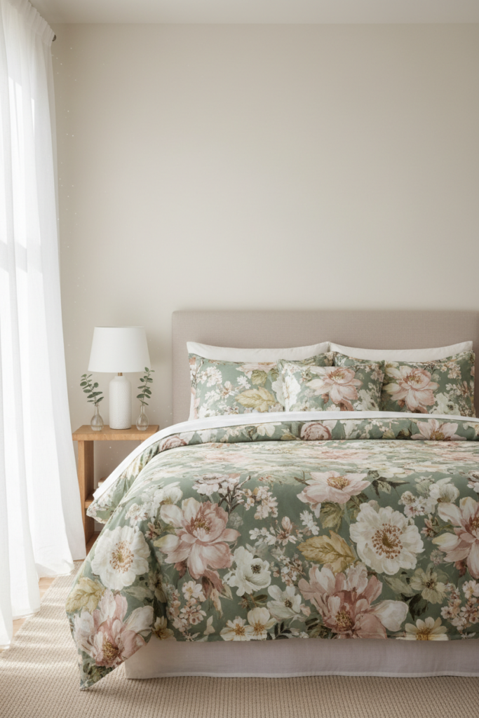 This guide will show you exactly how to style floral bedding so it feels soft, fresh, and cohesive rather than overwhelming.