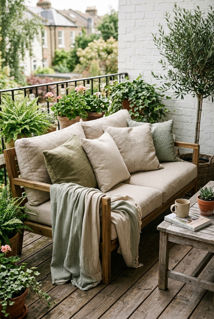 Add seat cushions that are thick enough to be comfortable, not just decorative. This is what turns the balcony into a place you actually want to sit.