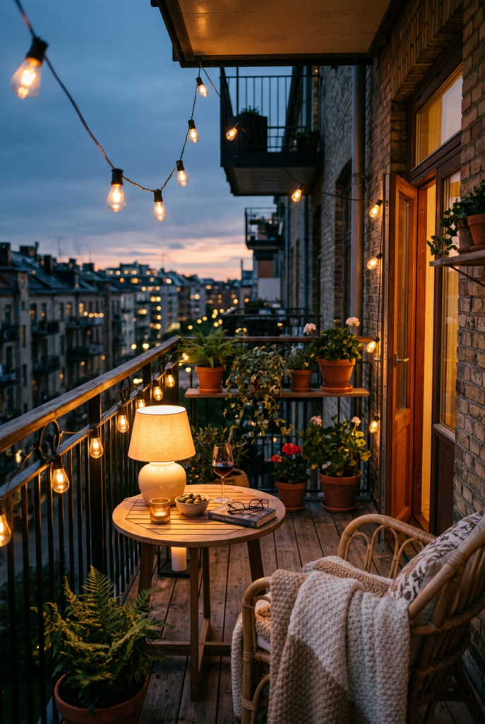 Lighting is what makes the balcony feel like part of your home after sunset.