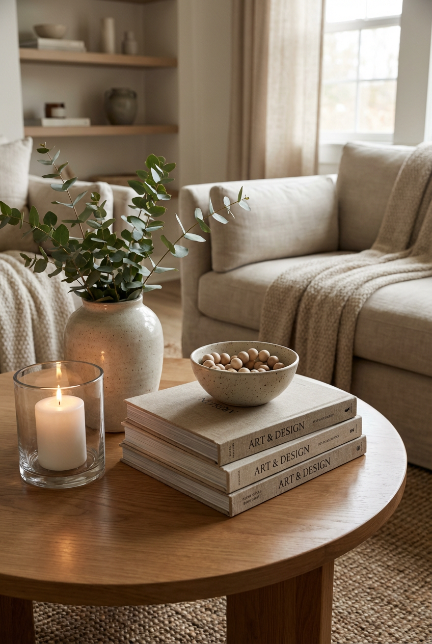 This works because open space gives the eye room to rest. It also keeps your coffee table practical for everyday use.