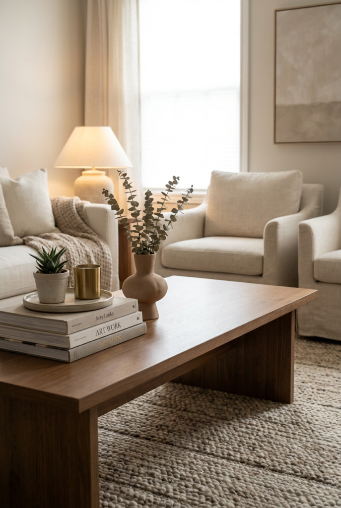 When styled thoughtfully, your coffee table can anchor the entire living room. It becomes more than a surface. It becomes a quiet focal point that reflects your style and makes the space feel warm and complete.