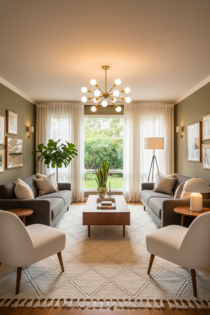 This guide will give you clear placement rules and measurements so your mid century modern lighting feels intentional, balanced, and functional.