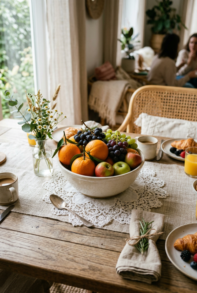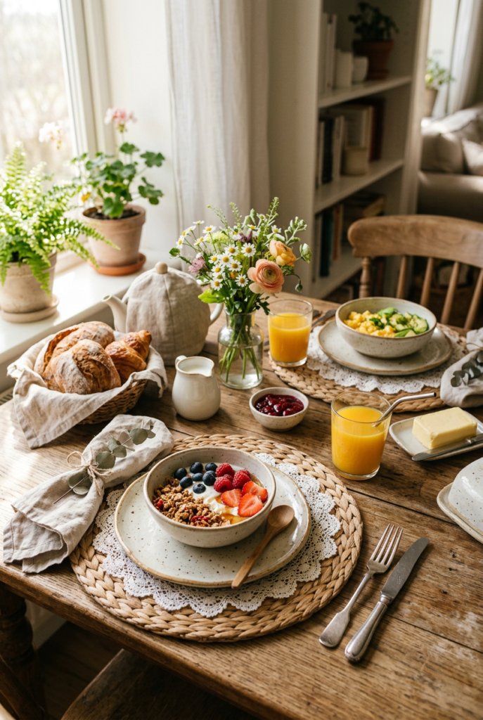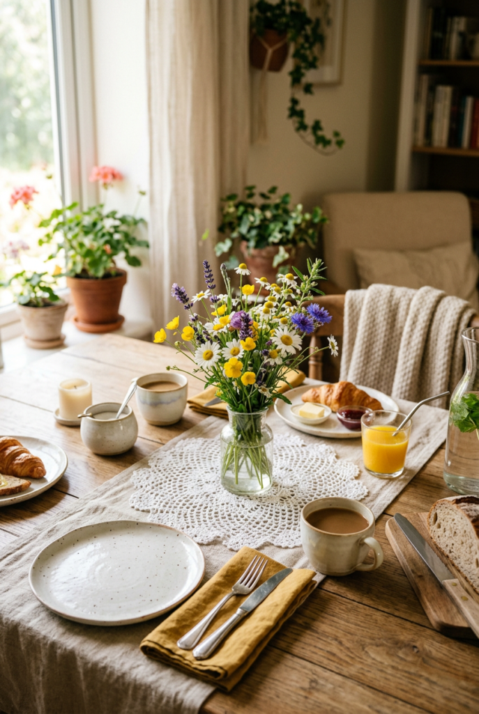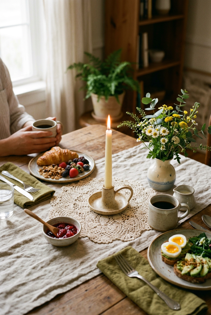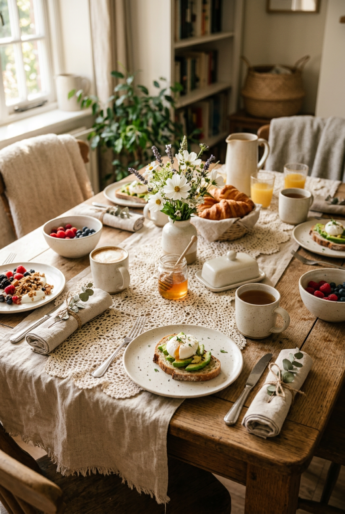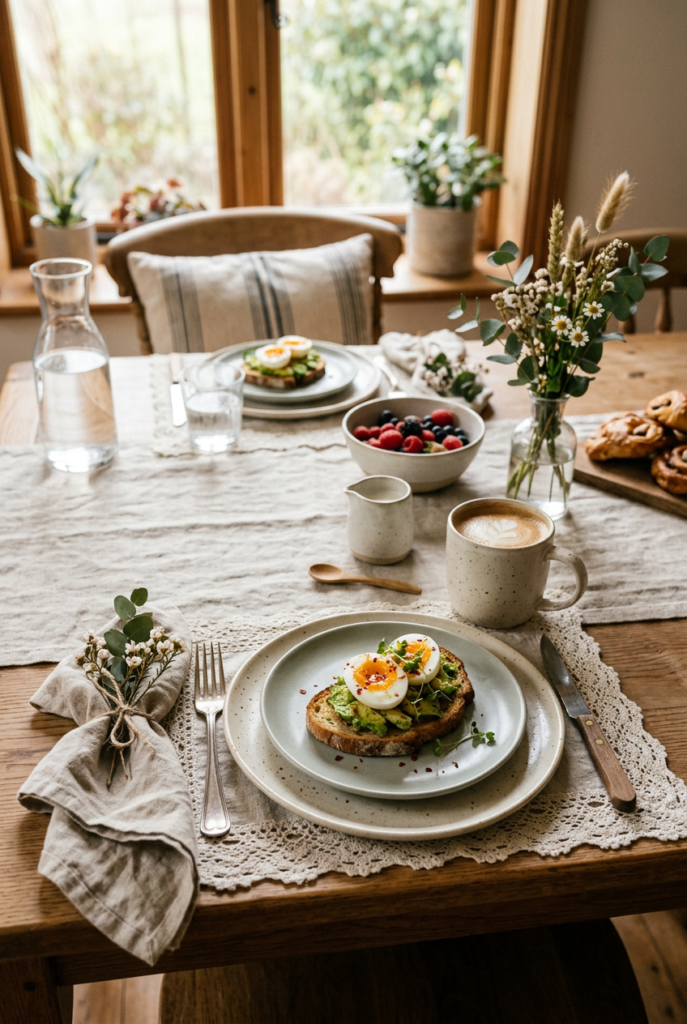 These simple brunch table ideas focus on warmth and comfort while keeping the setting easy to recreate for casual weekend gatherings.
