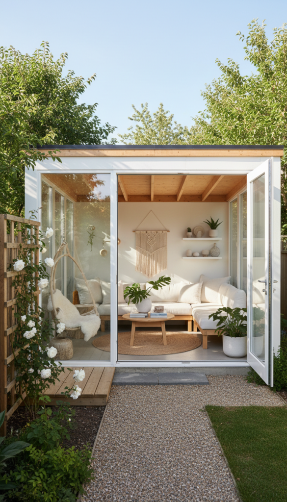 Adding a personal touch makes all the difference. A small shelf with plants, artwork, or decorative storage helps the shed feel intentional and lived-in. When every item has a purpose, the space feels calm instead of cluttered.