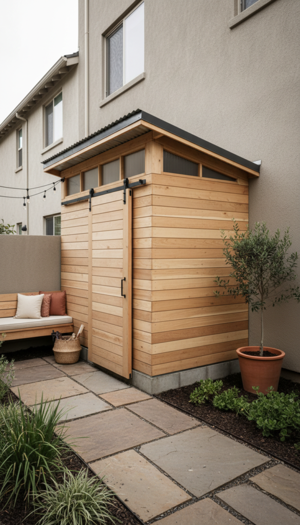 Lean-to sheds are perfect for small backyards because they attach to an existing wall or structure. This reduces the footprint while creating a clean, built-in look. They’re especially effective in urban homes where every inch matters.