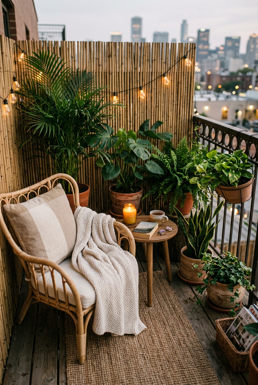 Even in busy apartment buildings, small adjustments can make a balcony feel more secluded.