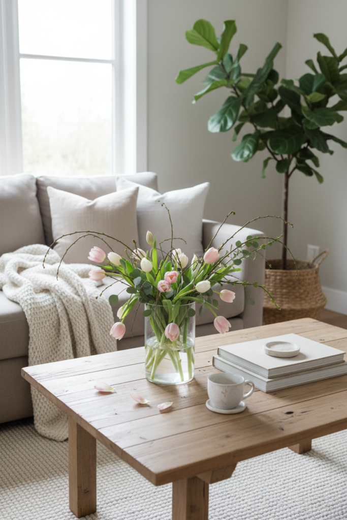Heavy throws, dark accents, and winter layers can start to feel out of place. You may not want a full makeover, but you do want the space to feel lighter, softer, and full of fresh energy.