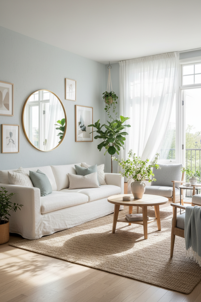 Use mirrors opposite windows to reflect natural light deeper into the room.