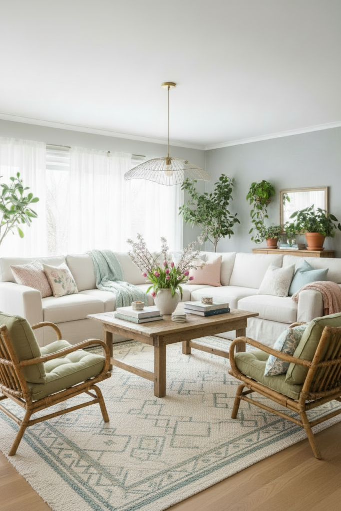 A spring layout refresh is about opening the room, improving flow, and letting natural light move freely.