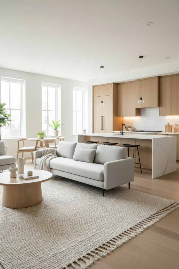 Avoid angling furniture randomly. Clean alignment feels intentional and calm.