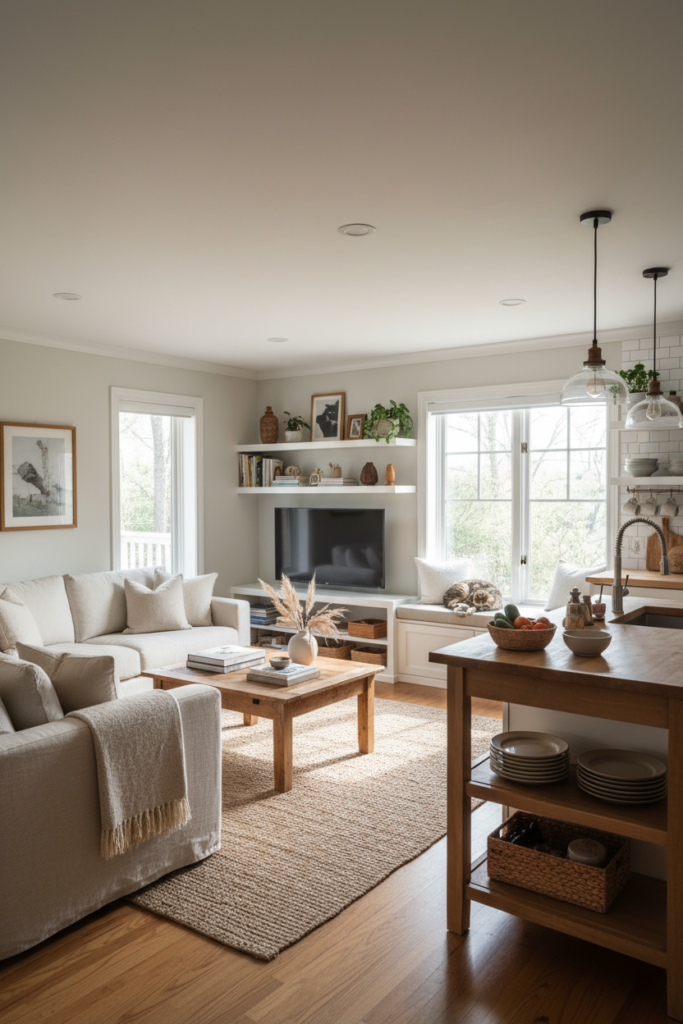 Finally, review soft items such as throw blankets, pillow covers, and rugs. Wash what needs refreshing and store extra pieces that aren’t currently in use. Keeping only a few well-chosen textiles helps the room feel lighter and more intentional while still staying cozy.